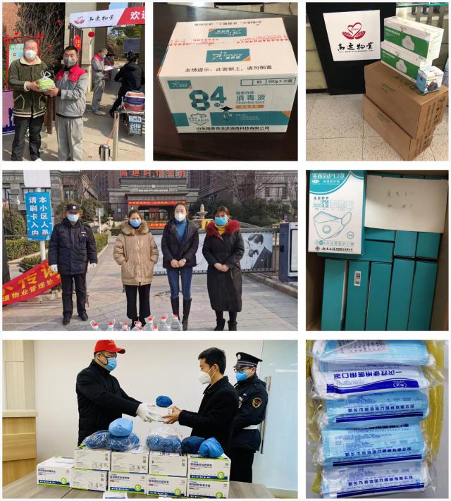 他們的付出,得到了業主和當地社區街道的認可與鼓勵。不少業主主動聯系物業,捐贈各類防疫物資。安高城市天地受捐贈自吸式防塵面罩60副,過濾棉芯400個,口罩和84消毒液若干;亳州高速·時代華府受捐贈消毒酒精10桶;阜陽高速·時代華府受捐贈口罩20包;合肥高速·時代公館受萬年埠街道金斗社區捐贈一次性手套100只、防護服1套……